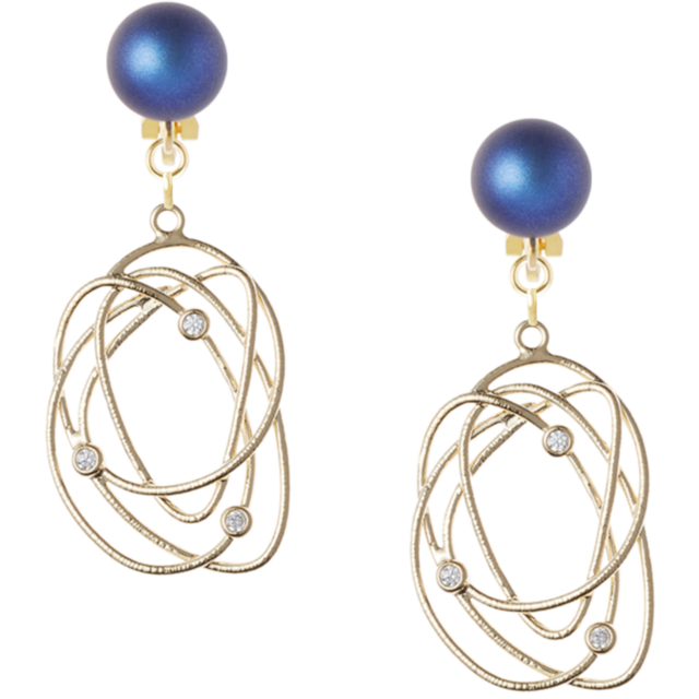 高級感漂うエレガントイヤリング✨#マット #大ぶり #真鍮 #変形 #ゴールド #金 #中間パーツ #ラインストーン #メタルパーツ #チャーム #スカシ #スワロフスキー #パール #丸 #ブルーその他 #ブルー #イヤリング