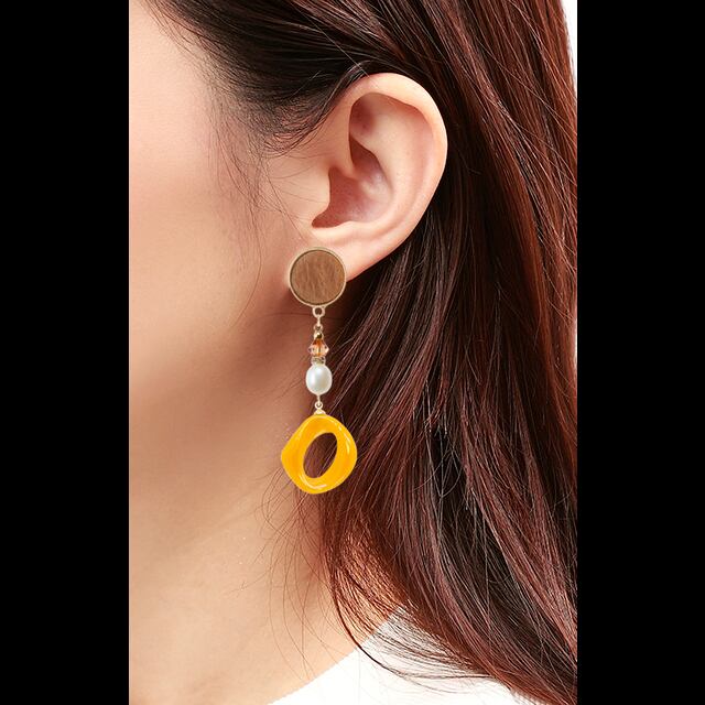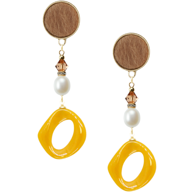 太陽をイメージしたイヤリング レトロなアクリルと季節感のあるブラウン配色が特徴の魅力的なデザインです✨