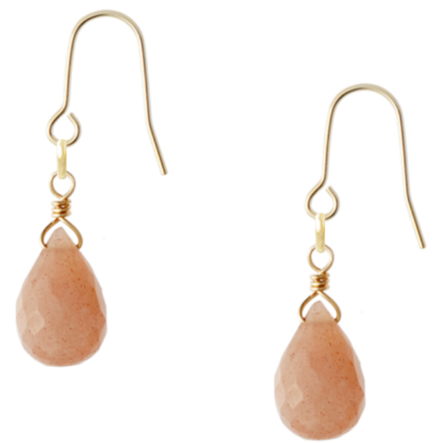 雫型オレンジmoon stoneのチャームピアス✨ 柔らかなオレンジのmoon stoneが滴り落ちるようにあしらわれた雫型のピアス。光を受けて優雅に輝き、耳元に温かみをプラスします。