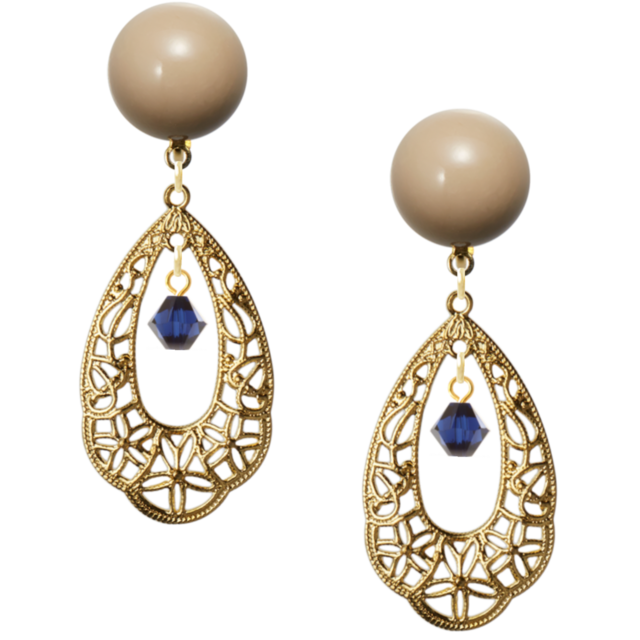 リーフスカシモチーフにロイヤルブルーのガラスを組み合わせた、どのスタイルにも映えるイヤリングです✨