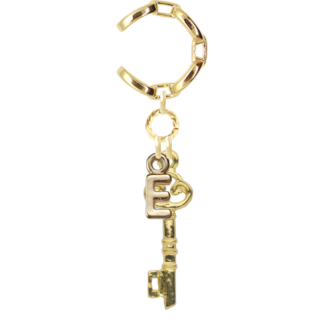 イニシャルチャームと鍵モチーフが融合した「ear cuff (E)」
