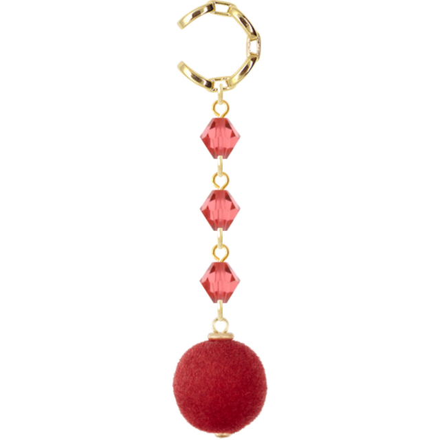 ■華やかな輝きと洗練されたデザインを持つLueur。こちらのイヤーカフは、スワロフスキーパパラチアとベルベッドボールレッドの絶妙な組み合わせにより、耳元に特別な存在感を与えるアイテムです。デイリーユースから特別な日まで、様々なシーンであなたのスタイルを引き立て、心を惹きつける魅力を放ちます。